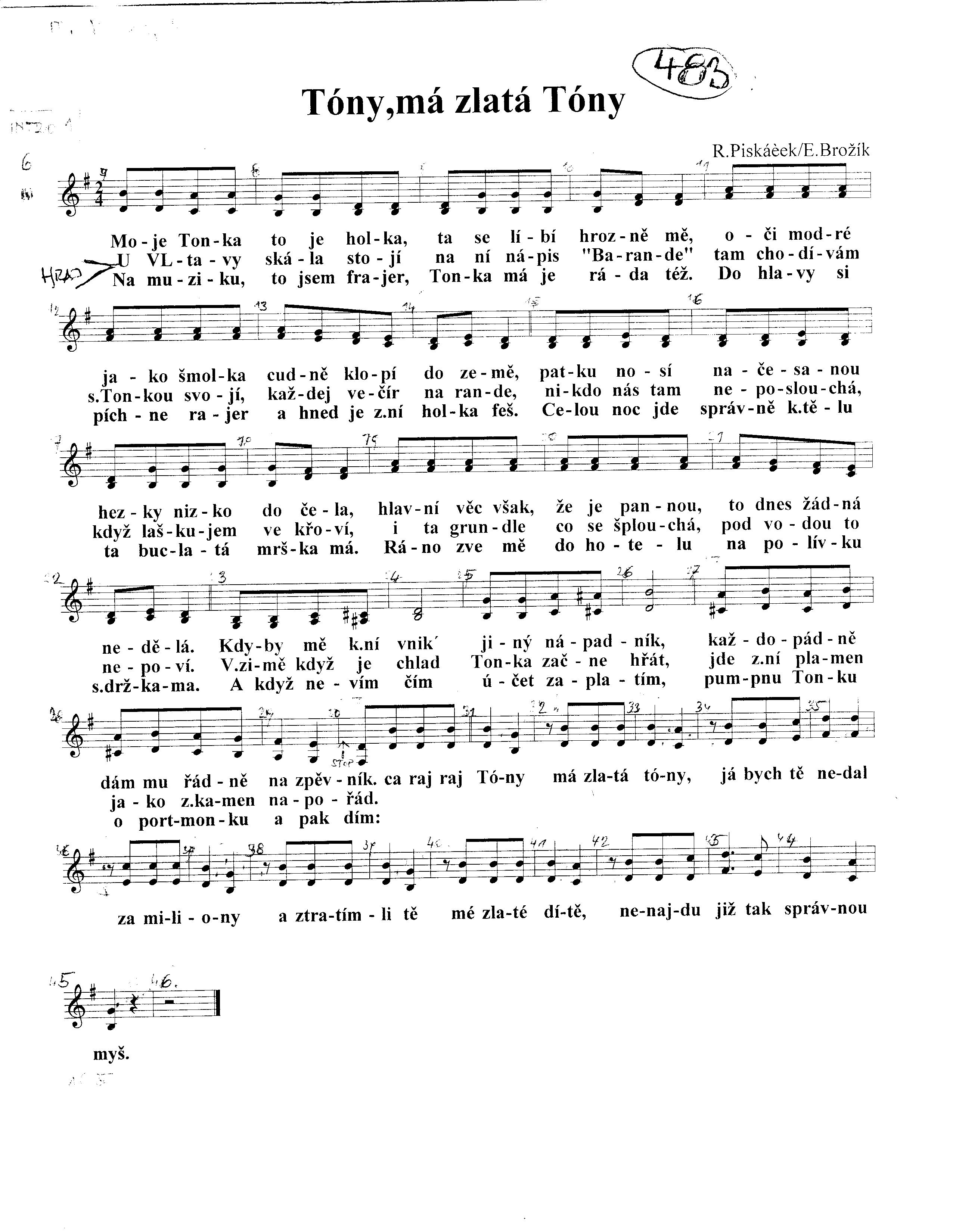 1. Moje Tonka to je holka, ta se líbí hrozně mě,