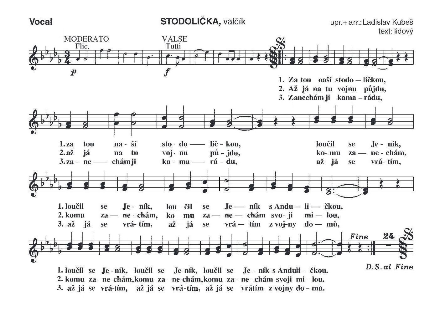 1. Za tou naší stodoličkou, za tou naší stodoličkou.